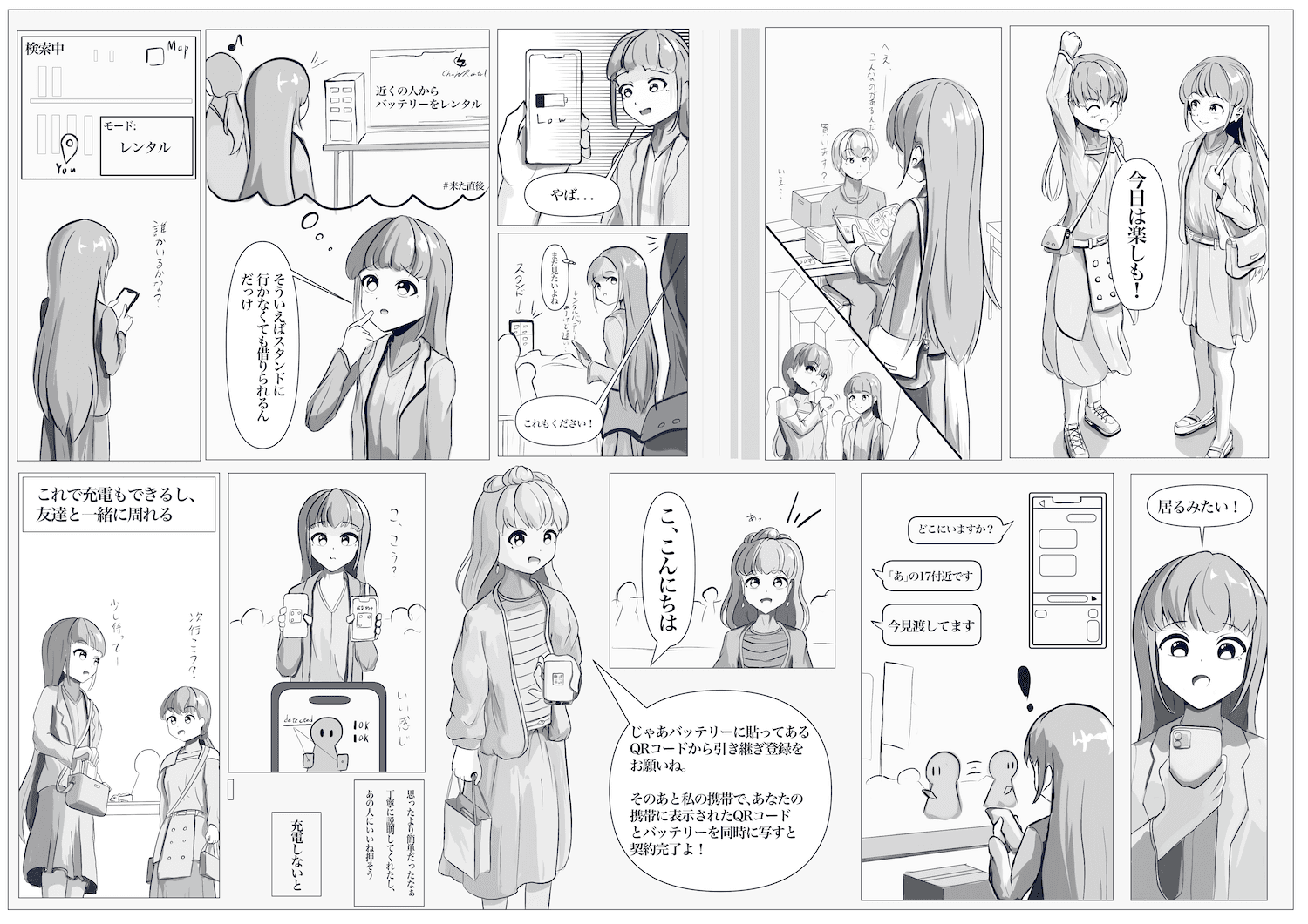 UI/UXデザイン提案の「ChainRental」のために作成した漫画です。